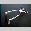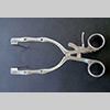 第3、第4頚椎上に作った術野から、第1、第2頚椎若しくは第6、第7頚椎の除圧・形成作業を行う際の開創器として使用します。アーム部分に関節を二箇所設けることで、角度や深さの調整に自由度があります。また第1、第2、第6、第7頚椎の深い角度で、一関節開創器を使用した際に発生する、持ち手部分の跳ね上がりが二箇所の関節により防止できます。そして体の表面に密着するため、術者の手の動きを妨げない設計となっています。