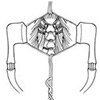 開創器を設置した時に起こる頭尾側の皮膚の弛みを持ち上げ、より良好な視野を確保するための補助器具です。フックの形状が特殊なため皮膚へのダメージを軽減できます。